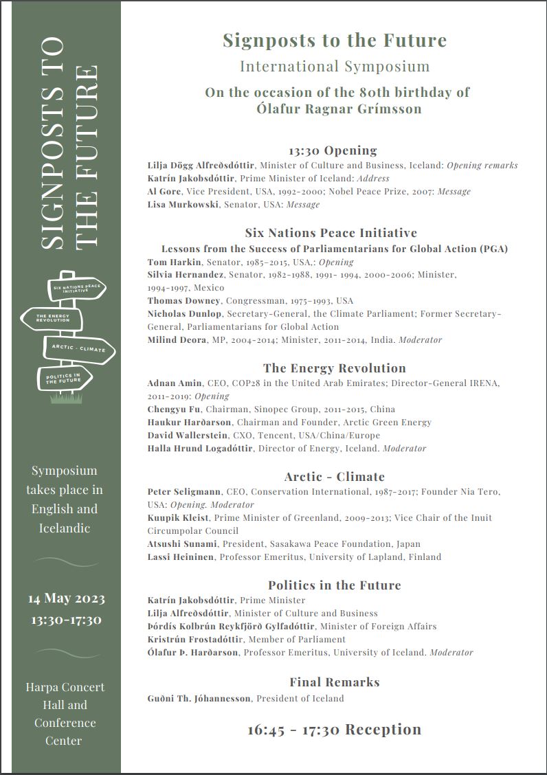 To celebrate this remarkable man and the 80-year milestone in his life an International Symposium - Signposts to the Future - will be held in Harpa in Reykjavík on the occasion of his birthday, May 14th.